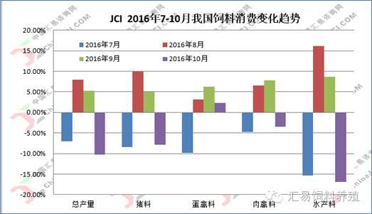 进入10月份以来,多数饲企表示饲料消费情况不及预期中理想,销量总体较9月份下降5%-10%。同时,从不同品种来看,我国猪料降幅相对明显,禽料总体平稳。此外,随着新一季的玉米上市量增加,以及当前畜禽养殖效益水平不及上半年,养殖户选择自配的比重也有所上升。总体来看,经过了9月的集中出现过后,10月份国内饲料总体消费水平处于阶段性的低点,四季度中后期需求量会逐步好转。当然,对于全年国内饲料消费趋势,JCI认为在宏观经济疲软、生猪养殖增幅偏缓、政府环保政策收紧等因素影响,2016年饲料消费趋势或呈现同比小幅下降的情况,而且可能要延续到明年的上半年。