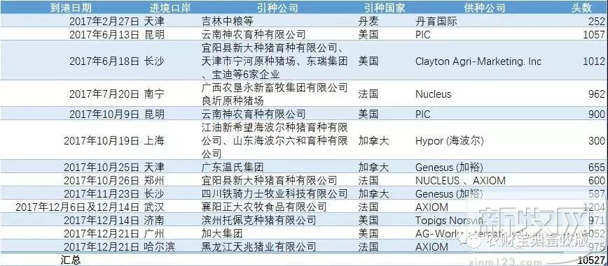 2017年进口种猪10527头,美、加、法三分天下