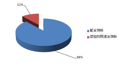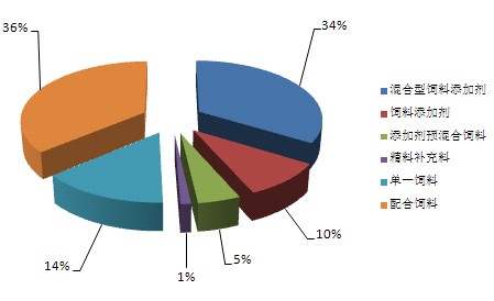 83个产品中,配合饲料为30个产品,混合型饲料添加剂为28个产品,单一饲料为12个产品,饲料添加剂为8个产品,添加剂预混合饲料为4个产品,精料补充料为一个产品,如图三所示。