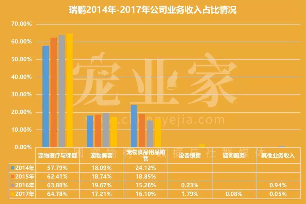 在宠物美容洗护业务上,据瑞鹏介绍:“公司通过其189位美容师及助理,在其70家直营连锁宠物医院内为客户提供全方位的宠物美容服务。报告期内,公司向犬、猫等动物提供共计约65万只次的美容服务。”