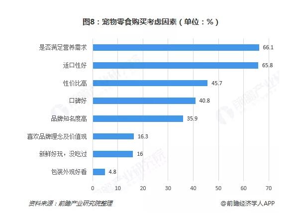 宠物食品的使用对象不具语言能力,因此消费者只能通过观察宠物是否爱吃、使用后是否营养安全等来判断。根据《宠物行业白皮书》的调查结果显示,“是否满足营养需求”和“适口性好”是“铲屎官”们选择宠物零食的两大考量因素。由于宠物食品的价格敏感性低,性价比是购买宠物零食的影响因素之一,但不是最重要的因素。