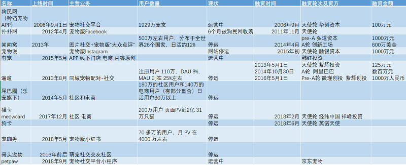 通过不完全统计可以发现,2012年之后,主打宠物社交的线上平台,在经历创业热与投资热之后,总体生存境况并不乐观。