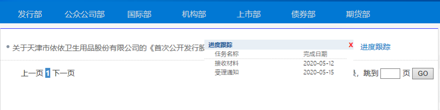 5月12日,中国证监会官网披露了依依股份《首次公开发行股票并上市》等IPO申请材料已被接收,并于15日更新受理通知。