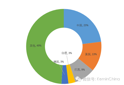 到2030年,估计会变化为中国占30%,美国占10%,巴西占8%,印度占4%,墨西哥占2%。