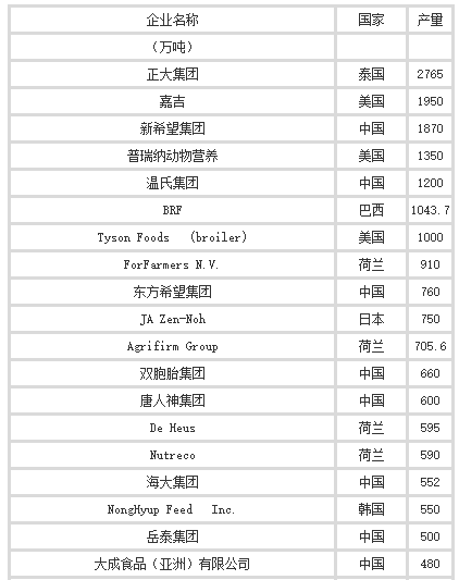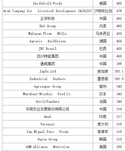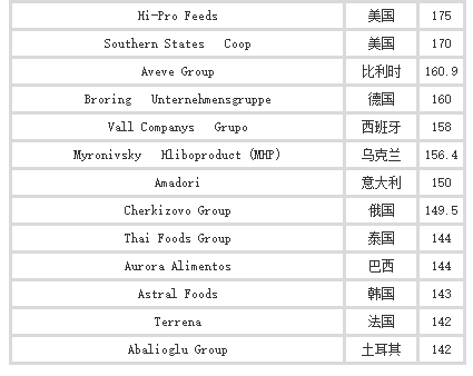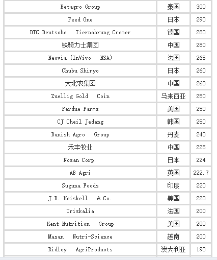 伴随着企业的并购与重组,预计2016年的排名会有较大的调整。此外,其他因素如物价,政治及动物疫病也会影响全球配合饲料的需求及产量。