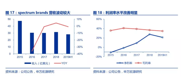营收波动较大,利润率水平明显改善品谱是一家多元化的全球品牌消费品公司,业务分为硬件与家居装修、家庭与个护、全球宠物护理、家庭和花园。