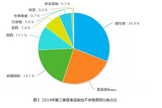 2019年第三季度国内食品安全监督抽检结果表明,各类食品整体抽检合格率较高,食品安全形势总体平稳。针对抽检中发现的较为突出的问题,例如微生物超标、违规使用食品添加剂、质量指标不合格、兽药残留超标等问题,生产企业需要落实食品安全主体责任,制定相应防控措施,从原辅料验收、生产经营过程的环境卫生条件控制、配方及生产工艺的科学合理制定、出厂检验的落实等方面加强管理。