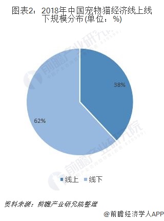 2018年,我国猫咪经济从渠道增速分布上来看,与其他国家有很大差别。美国、日本、德国等发达国家的猫咪经济已有较长历史,增速较为缓慢,早已形成了杂货零售商和专业零售商为主、其他途径为辅的渠道结构。而中国等新兴市场的增速大部分由电商渠道贡献。这主要是由于中国电商渗透率高,宠物猫和电商的受众人群一致,电商渠道容易被接受。更进一步看,宠物猫经济线上规模占比38%,线下规模占比为62%。