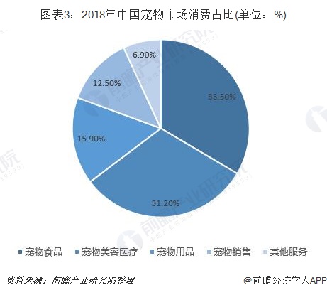 从消费领域看,食品和医疗一直是猫咪经济的热点赛道,但国外产品却占据着主要市场份额。宠物食品作为刚性需求,在行业中份额占比最高达33.5%,其次为宠物医疗,占比达31.20%。