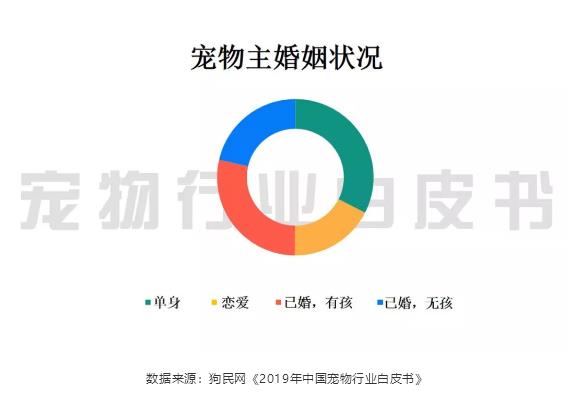 婚姻状况上,“单身一族”和“有孩一族”更偏爱养宠,宠物主中的单身人士占比达到了32.5%。
