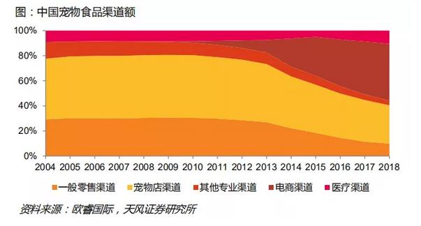 我国宠物食品渠道以电商渠道及宠物店为主。我国宠物食品渠道中,电商占比约50%,宠物店占比约30%,商超渠道约为10%。宠物产业成熟度致使渠道产生差异,在国内,宠物食品渠道的重点是电商和宠物店。
