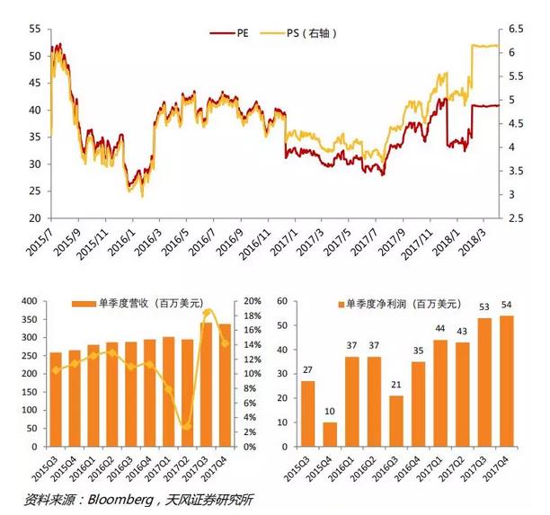 蓝爵上市后即被看好,PE高达50倍,但由于在与雀巢的官司中败诉,估值从50倍下降至25倍,事件平息之后回升,稳定在40倍上下。由于17年上半年公司单季度营收增速持续放缓,公司估值从平均40倍下滑到平均30倍。