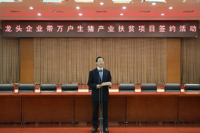 韩长赋指出,举办“龙头企业带万户生猪产业扶贫项目”集中签约活动,是贯彻落实习近平总书记重要指示精神,推进生猪稳产保供工作的具体行动,也是示范带动产业扶贫的重要举措。抓住当前生猪市场行情好的有利时机,引导大型养猪企业采取“公司+农户”、入股加盟、托管租赁等方式,到贫困地区带动中小养殖场户补栏复养,对于促进贫困地区发展产业和加快生猪生产恢复都具有重要意义。生猪养殖龙头企业要抓住机遇,抓紧落实签约项目,加快项目开工建设进度,抓紧布局改造建设一批标准化家庭猪场、生猪扩繁场、屠宰加工厂和冷链物流中心。