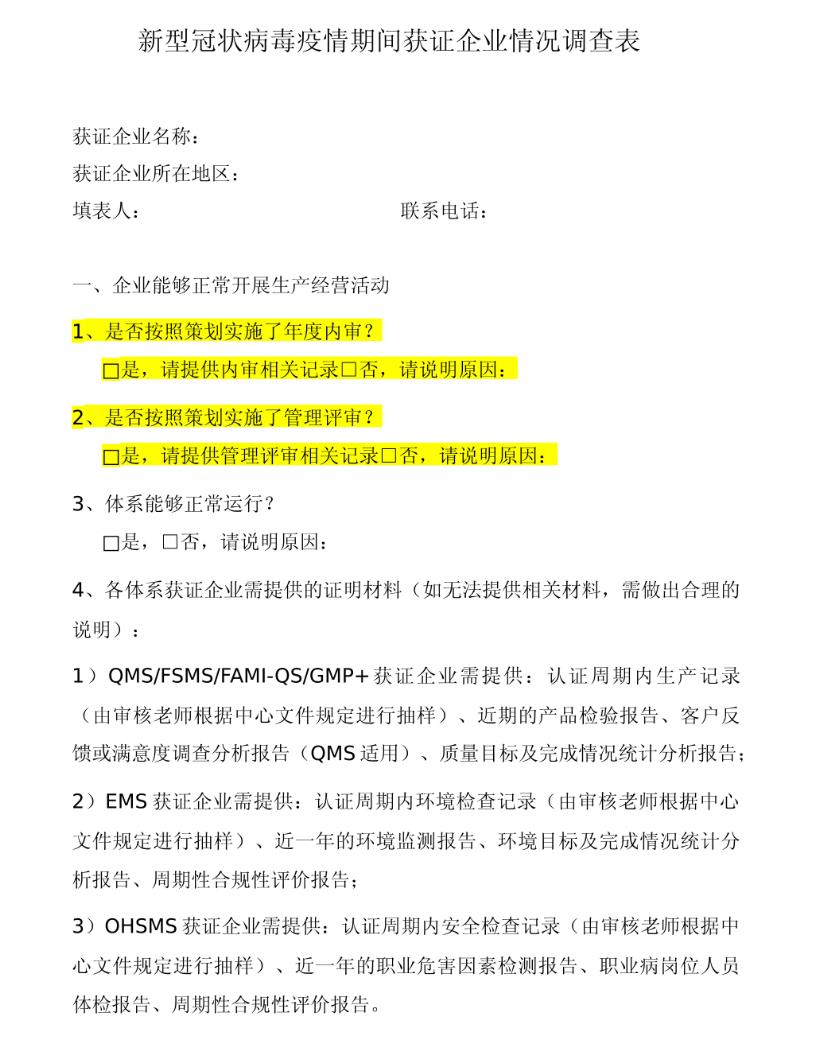 我中心关于新型冠状病毒疫情期间调整认证审核工作的通知