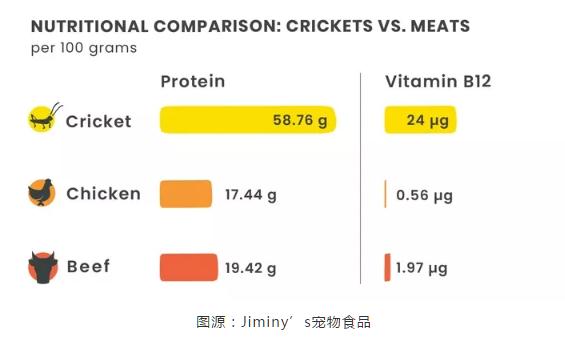 Jiminy's是一家总部位于加利福尼亚州伯克利的宠物食品制造商,他们使用可持续的蛋白质来源,推出了两种完全均衡的昆虫蛋白狗粮——Good Grub包括昆虫蛋白粉,而Cricket Crave包括蟋蟀蛋白粉。另一家总部位于蒙特利尔的犬粮公司Wilder Harrier也推出基于昆虫蛋白制作的宠物食品,其中大多数蛋白质来自黑水虻,由加拿大的昆虫饲养设施提供。