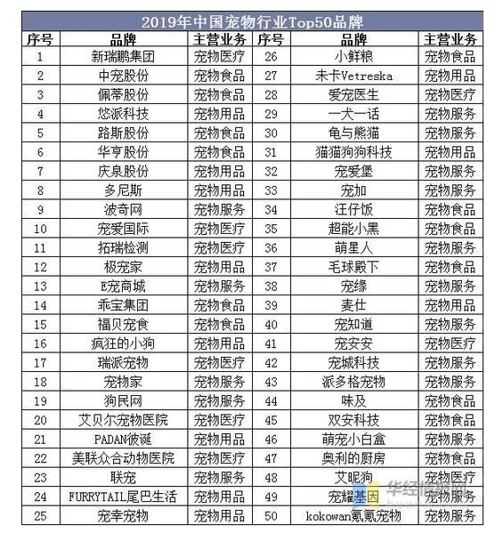 2019年中国宠物食品Top50品牌