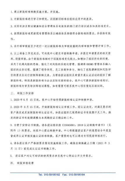 关于 GBT28001-2011转换为ISO450012018认证标准换版工作安排的通知