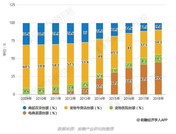 (中国宠物食品销售渠道份额变化情况)