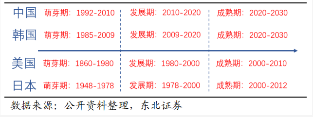第二、中国宠物行业仍处于初期阶段,规模不足以支持大型线下门店发展;根据宠物行业的发展特点可以分为三个阶段,目前我国仍处于行业规模高速增长的发展期:2008年后人均GDP突破3000美元后出现大面积的“养宠潮”,宠物产品市场也因而得到快速发展的契机;2019年我国宠物市场规模达到2024亿元。尽管如此,我国宠物行业的体量较小。