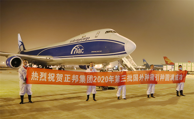据介绍,2020年3月8日,新冠疫情最为紧张的时期,正邦从法国引种的首批1020头GGP种猪顺利抵达云南昆明。时隔四个月的7月9日、7月10日,第二批次1500头GGP种猪搭乘两架包机落地昆明长水国际机场。目前,两批GGP种猪已经在云南武定隔离场完成了海关检疫隔离,并分别转运到相应的核心育种场进行饲养管理,第一批种猪预计10月份分娩产子。