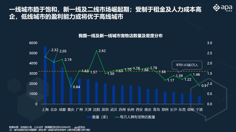 根据大众点评搜索数据显示,我国19个一线及新一线城市宠物店共有40,951家。上海、北京、成都、重庆位列前四。从人口密度分析,新一线及二线市场更具发展潜力。