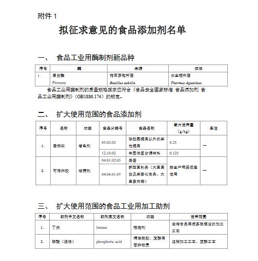 (一)背景资料。可得然胶作为食品添加剂已列入《食品安全国家标准食品添加剂使用标准》(GB 2760),允许用于豆腐类、生湿面制品、生干面制品等。本次申请扩大使用范围用于果酱(食品类别04.01.02.05)和新型豆制品(大豆蛋白及其膨化食品、大豆素肉等)(食品类别04.04.01.05)。国际食品5法典委员会、美国食品药品管理局等允许其作为增稠剂用于各类食品。