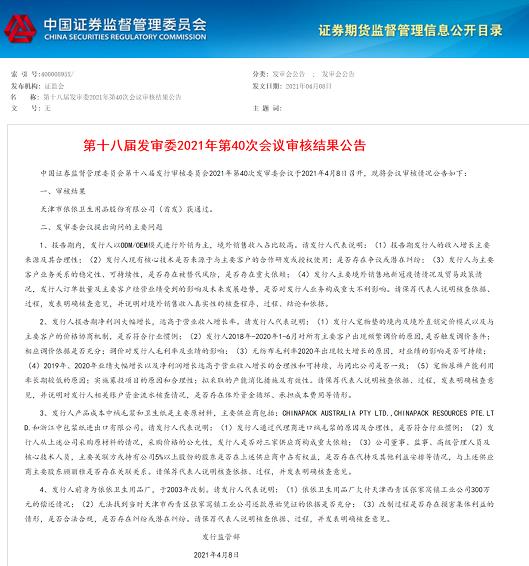 日前,中国证券监督管理委员会召开了2021年第40次发行审核委员会工作会议,会议审核并通过了天津市依依卫生用品股份有限公司的IPO首发申请。这意味着依依股份成功实现了从新三板到深交所的跃升,将成为宠物卫生用品第一股。