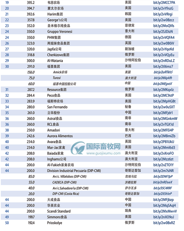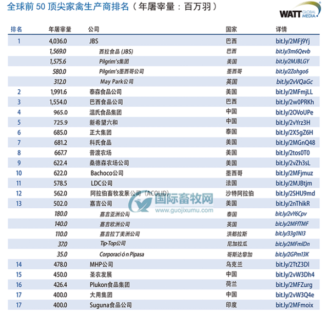 今年的排名采取了与以往略为不同的呈现方法,前50名肉鸡生产商排名榜和其他几个榜单中,突出展示了其母公司及下属的子公司。