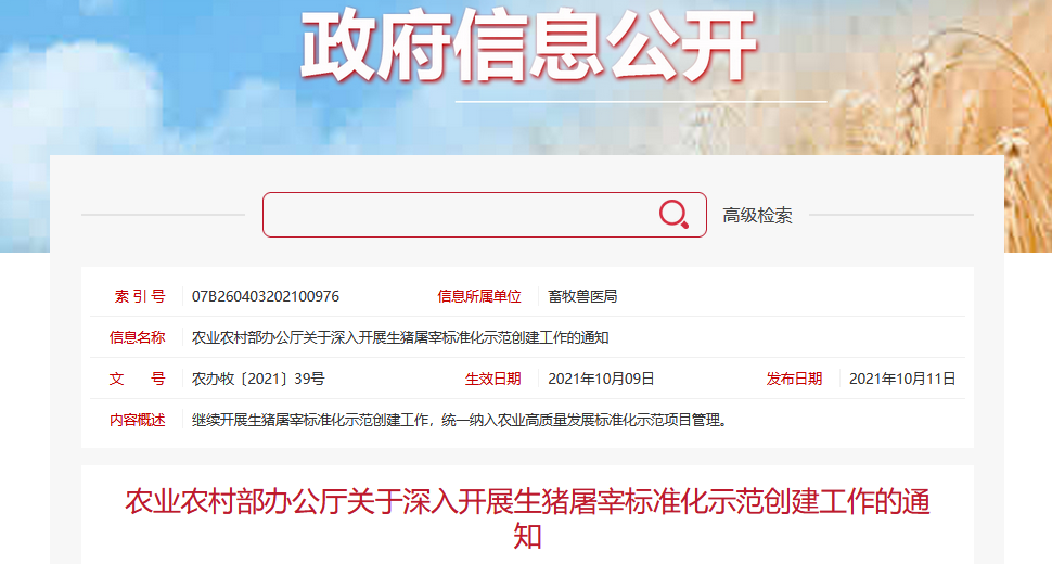 农业农村部 | 关于深入开展生猪屠宰标准化示范创建工作