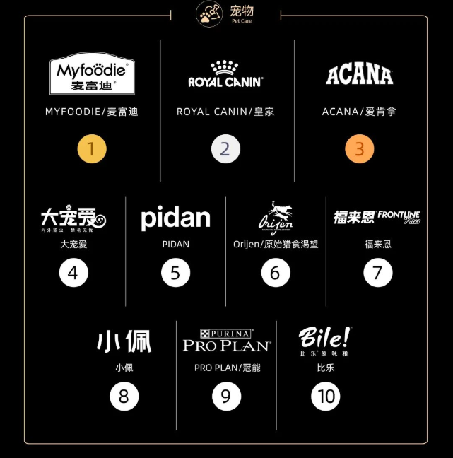 天猫发布2021-2022年度TOP品牌力榜 单麦富迪榜首,冠能位居第九