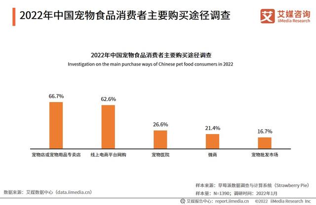 调研数据显示,线下宠物店和线上电商平台网购,是中国宠物食品消费者主要的购买途径。