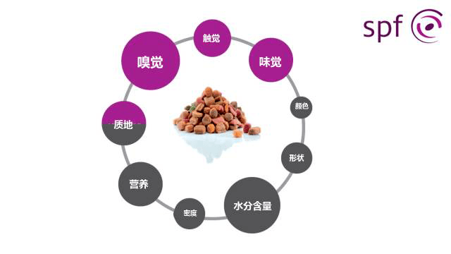 研究适口性要从两个方面着手,产品和狗狗本身。如上图所示,紫色代表狗狗自身的的因素,灰色代表产品因素,面积越大,影响力越大。