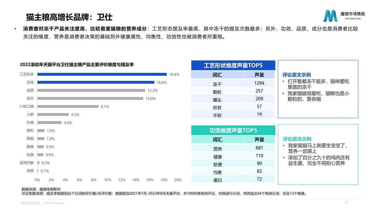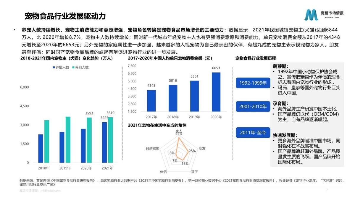 接下来,魔镜将主要围绕宠物主粮、宠物零食、宠物营养保健食品这三个市场,与您共读今天的报告《2022年宠物食品市场趋势洞察》。
