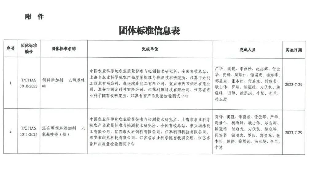 《饲料添加剂 乙氧基喹啉》等2项团体标准批准发布