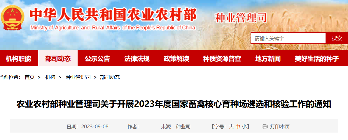 农业农村部种业管理司开展2023年度国家畜禽核心育种场遴选和核验工作