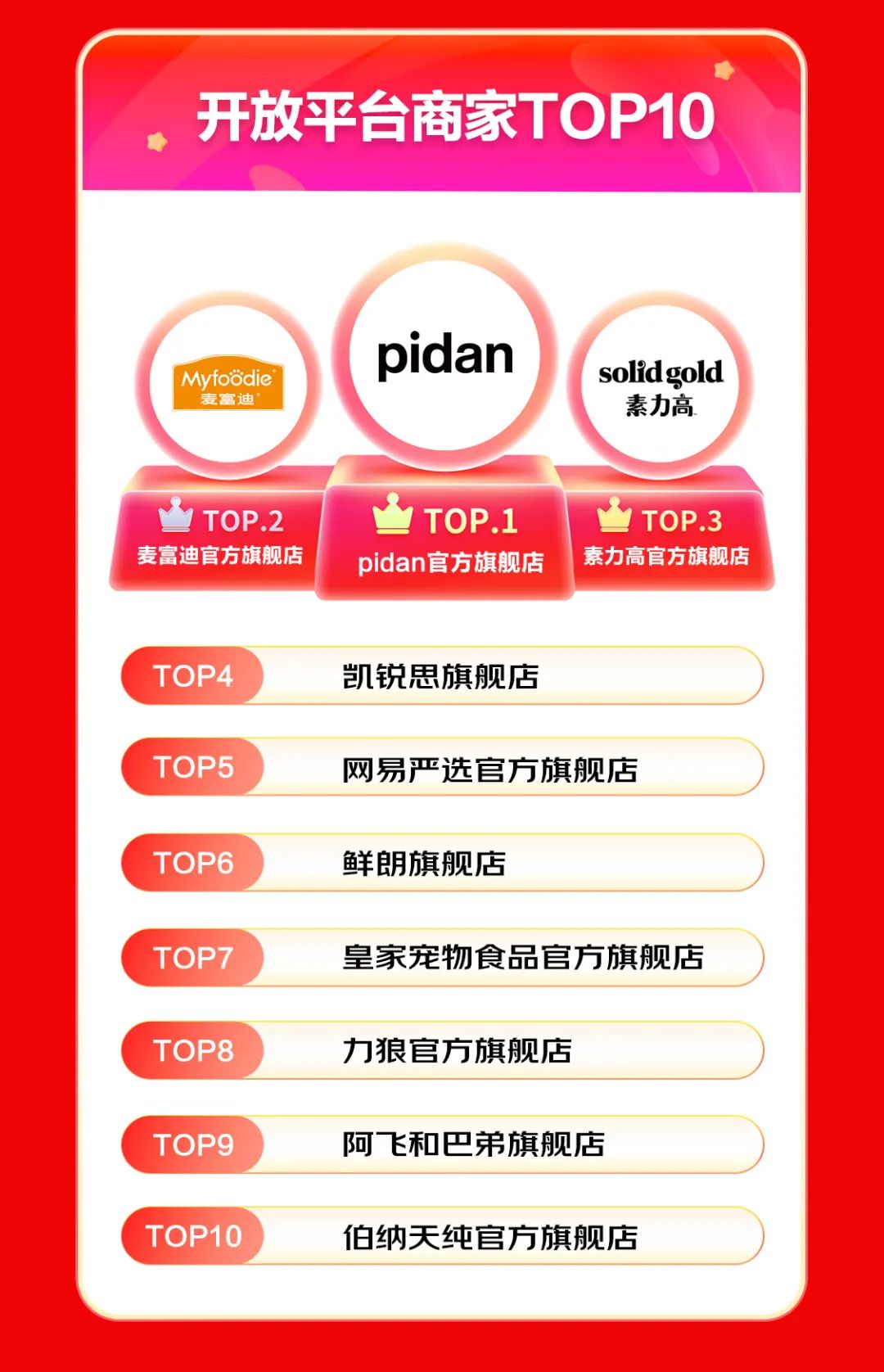 其中,从京东宠物的开放平台榜单看,位列前10的分别是: