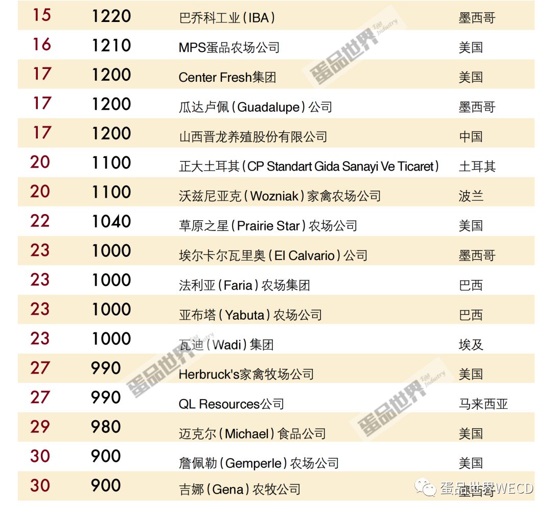 2023年全球前30强蛋品生产商排行榜出炉