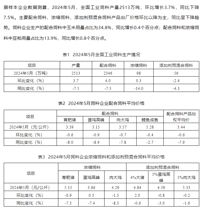2024年5月份全国饲料生产形势