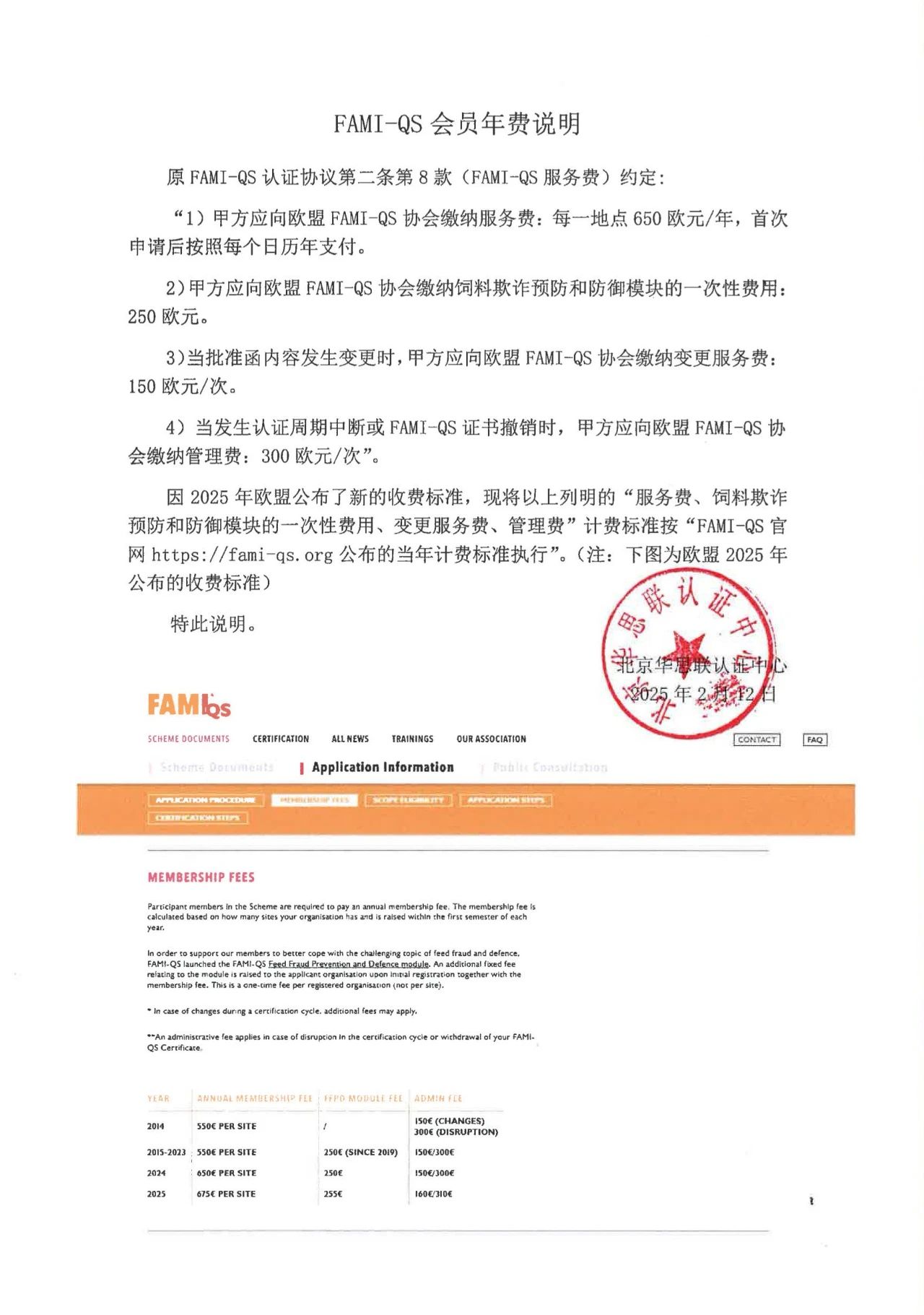 FAMI-QS 会员年费说明